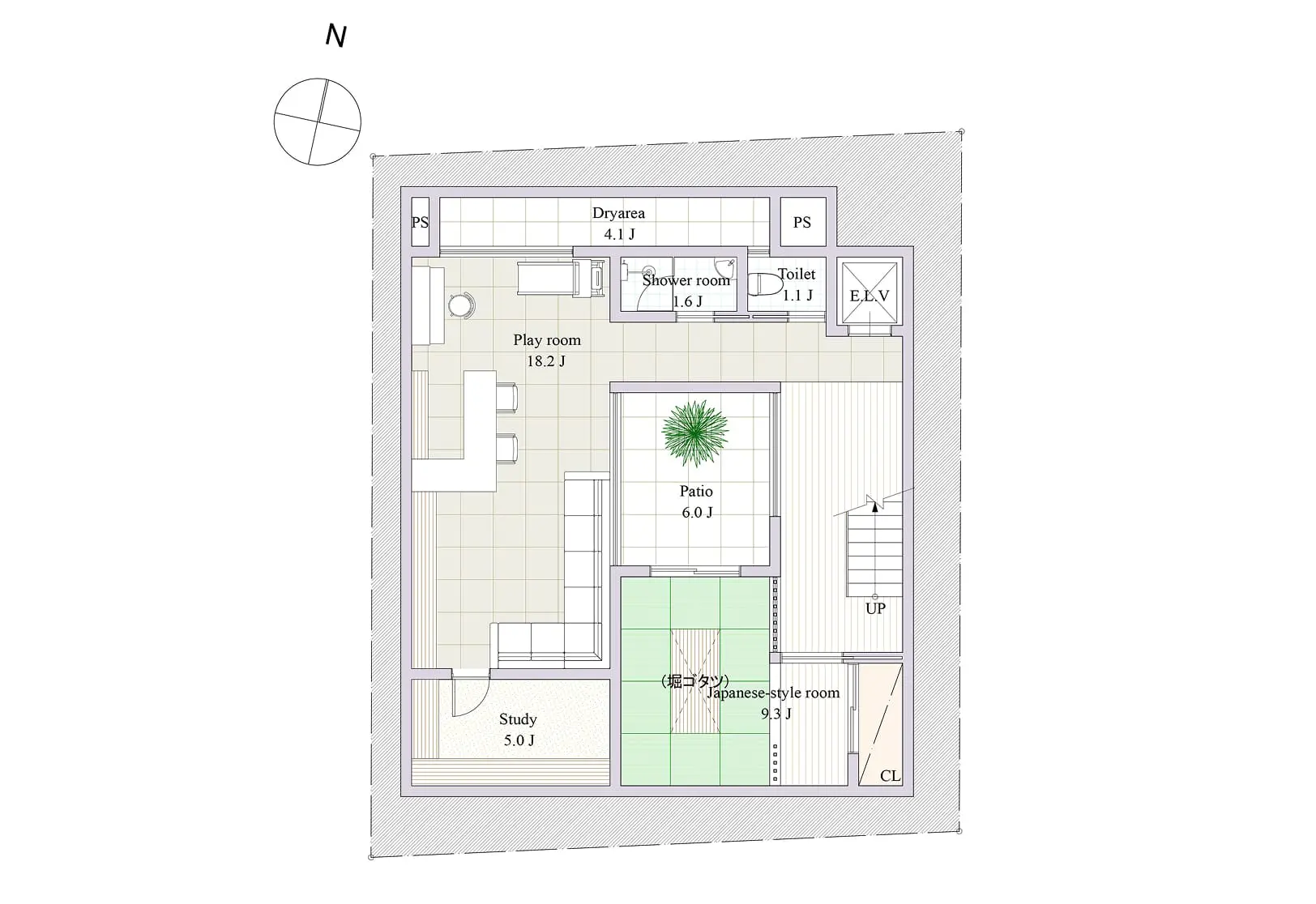 都市にありながら、空の光を巧みに取り込み、プライバシーが守られた豊かな暮らしを実現した住まいです。地下から屋上まで続く5層構成は、中央にある吹き抜けのパティオが各階へ自然光を導き、建物全体に一体感と開放感をもたらします。